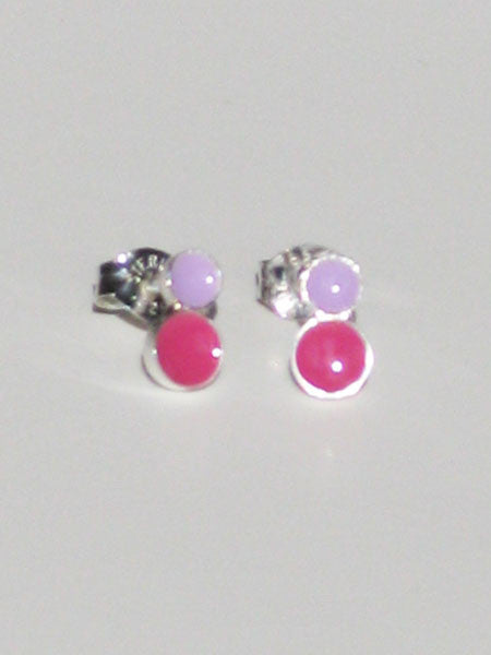 - Lavender and hot pink tiny enamel dots, set in sterling silver.