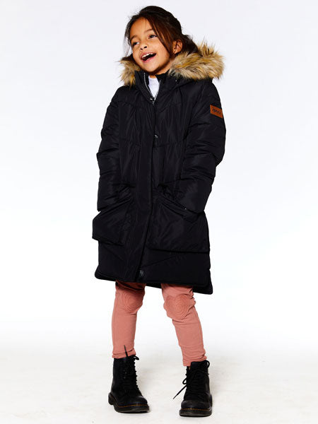 Deux Par Deux Puffy Long Coat Black Girls 6-14