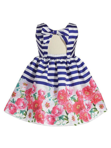 Luli & Me Peony Stripe Back Bow Dress 6X