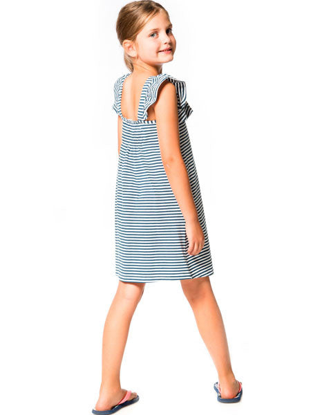 Deux Par Deux High Style At Low Tide Striped Jersey Dress Navy Size 4-12
