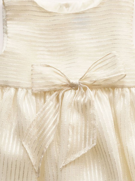 Luli & Me Stripe Cream & Gold Organza Dress With Bow Toddler Girls