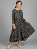 Fashion and comfort combine in this handkerchief hem dress featuring a stunning floral block print fabric. Tiered frills on the skirt and a side tie at the waist, give a relaxed Boho vibe.